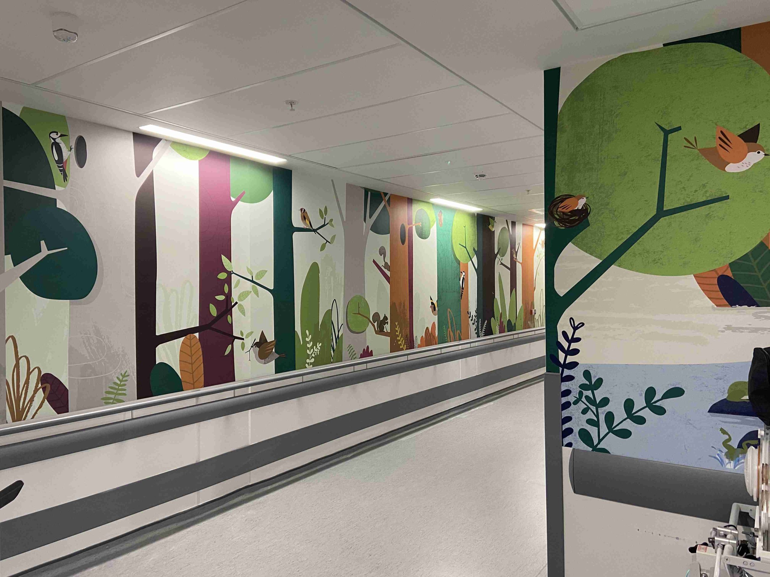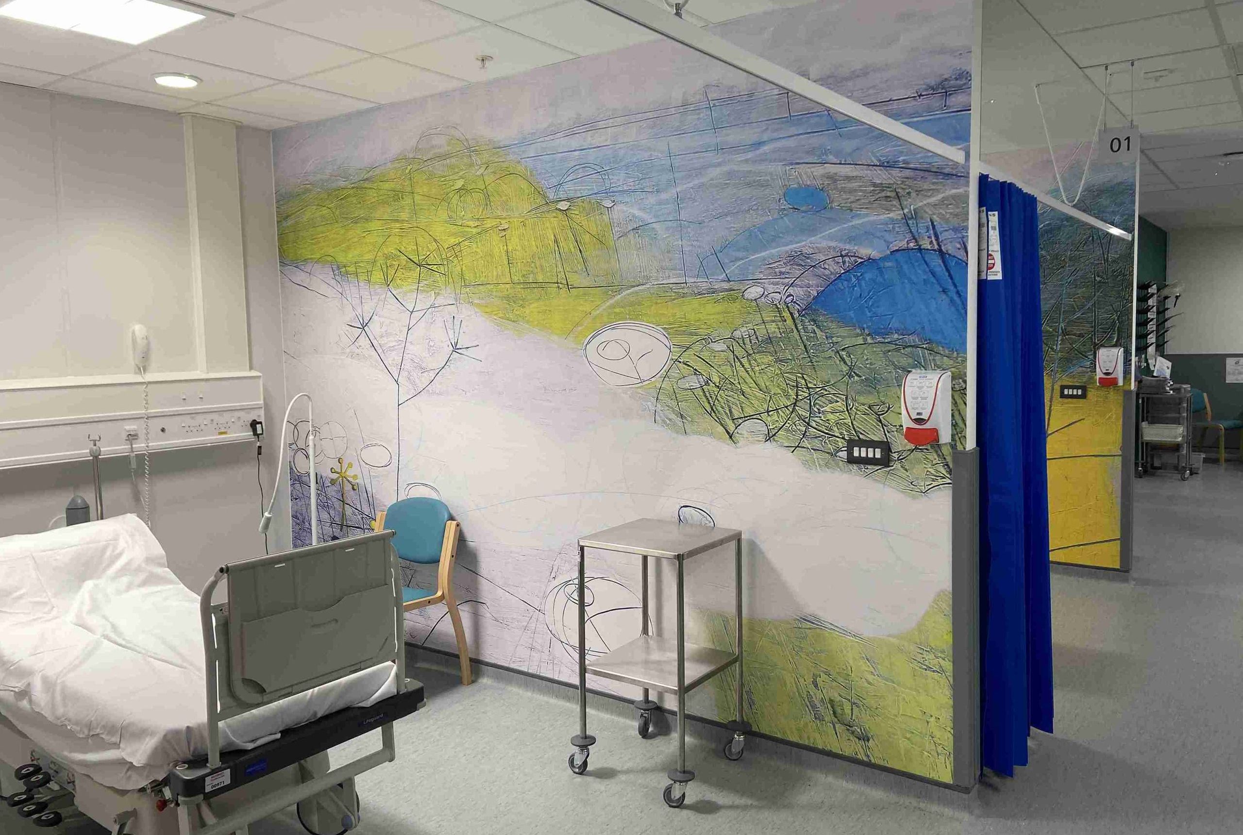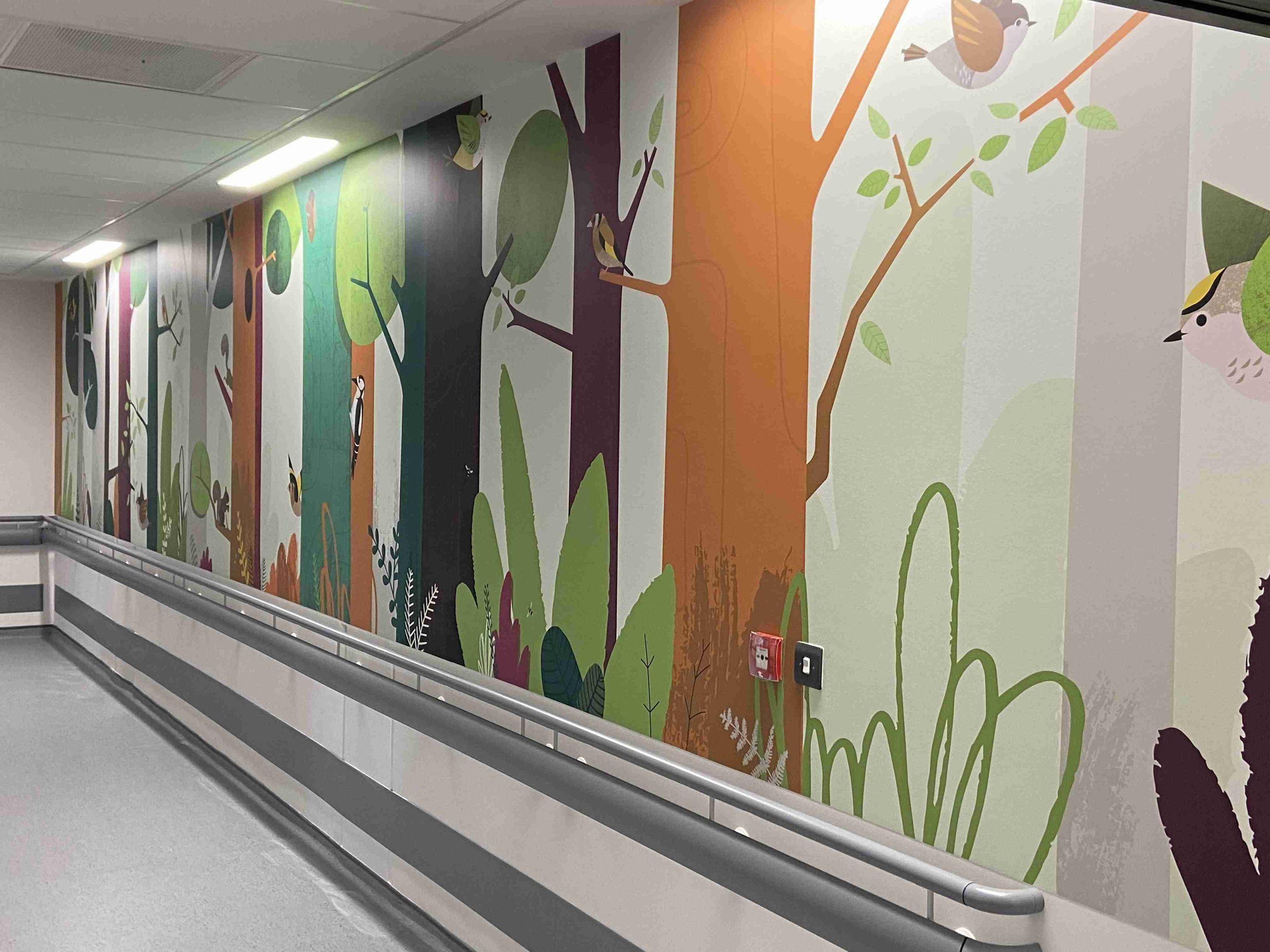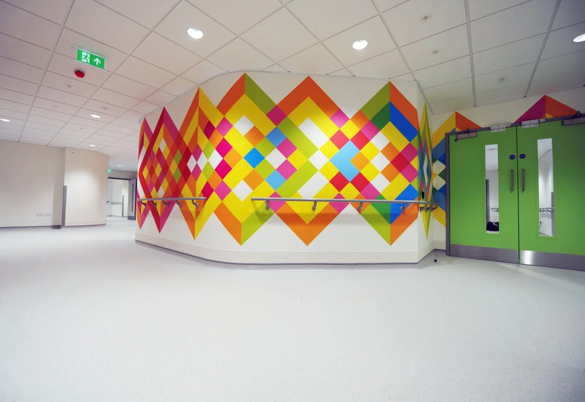 Working for artist Morag Myerscough, we printed and installed from artwork supplied wallpaper at Newham Hospital’s ward covering an area of 180 sq meters.