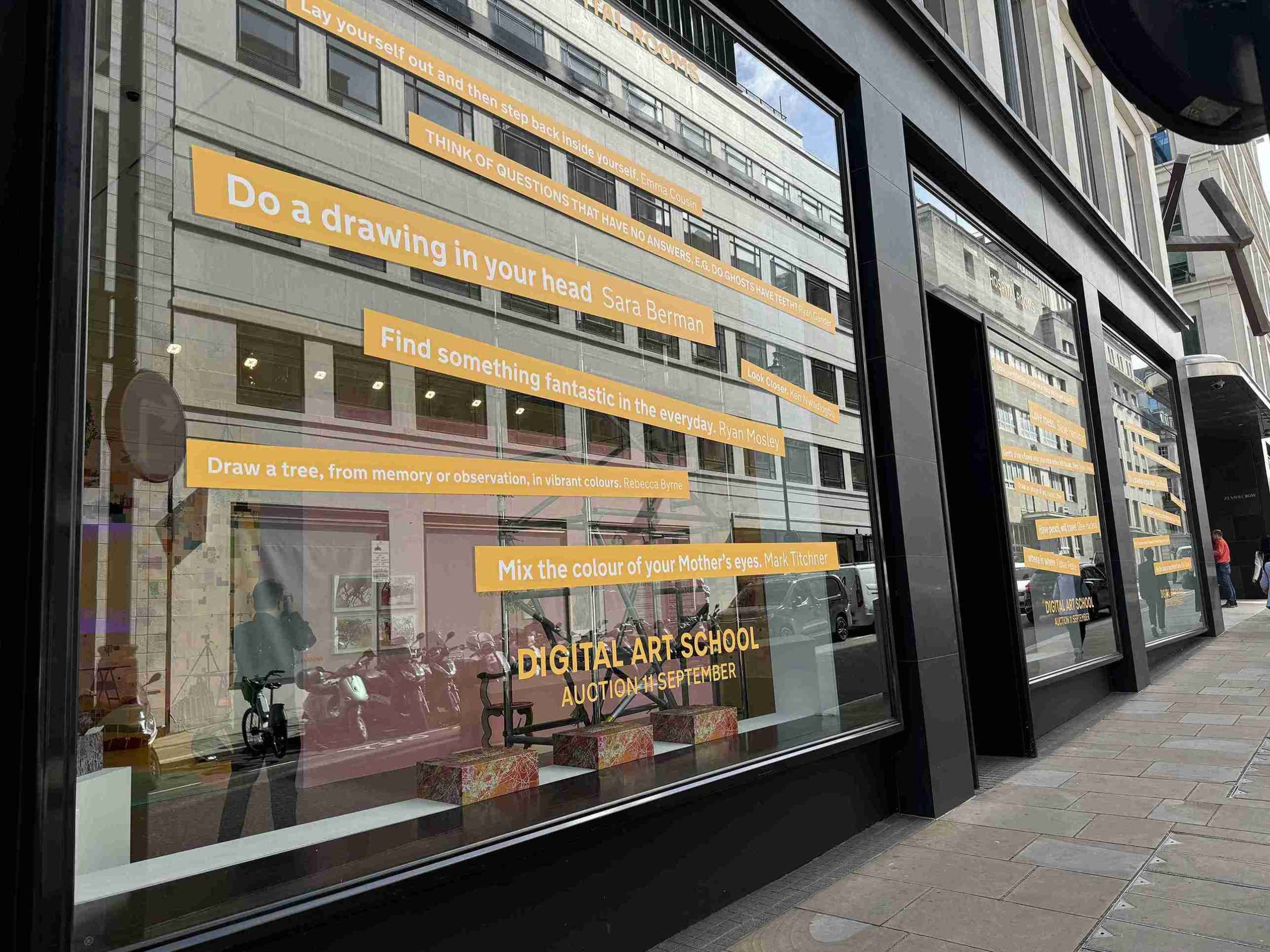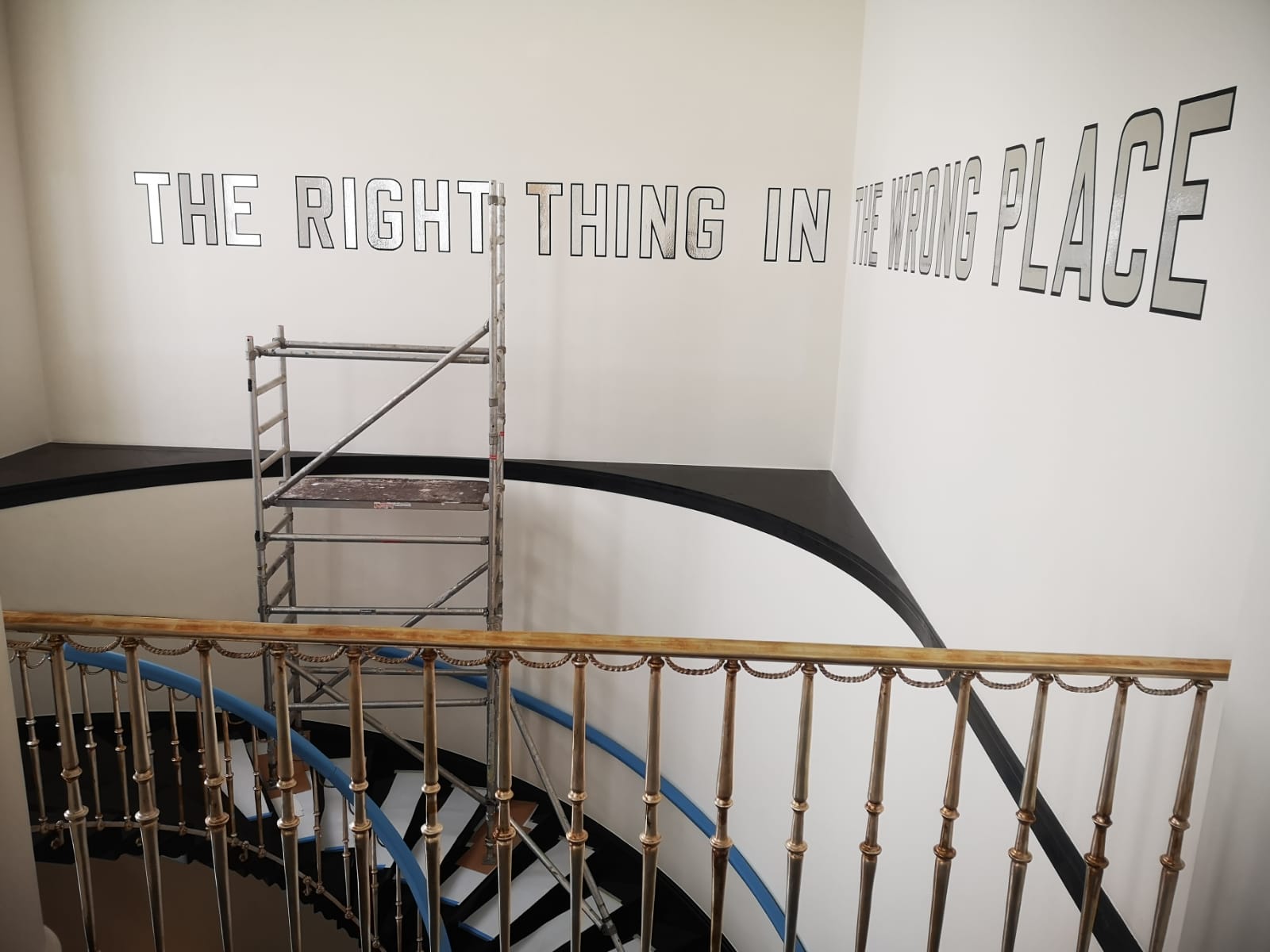 We created all the exterior artwork and branding outside the building, including a huge PVC banner, and installed some of the artist work, including printing and cutting vinyl for Laurence Weiner.