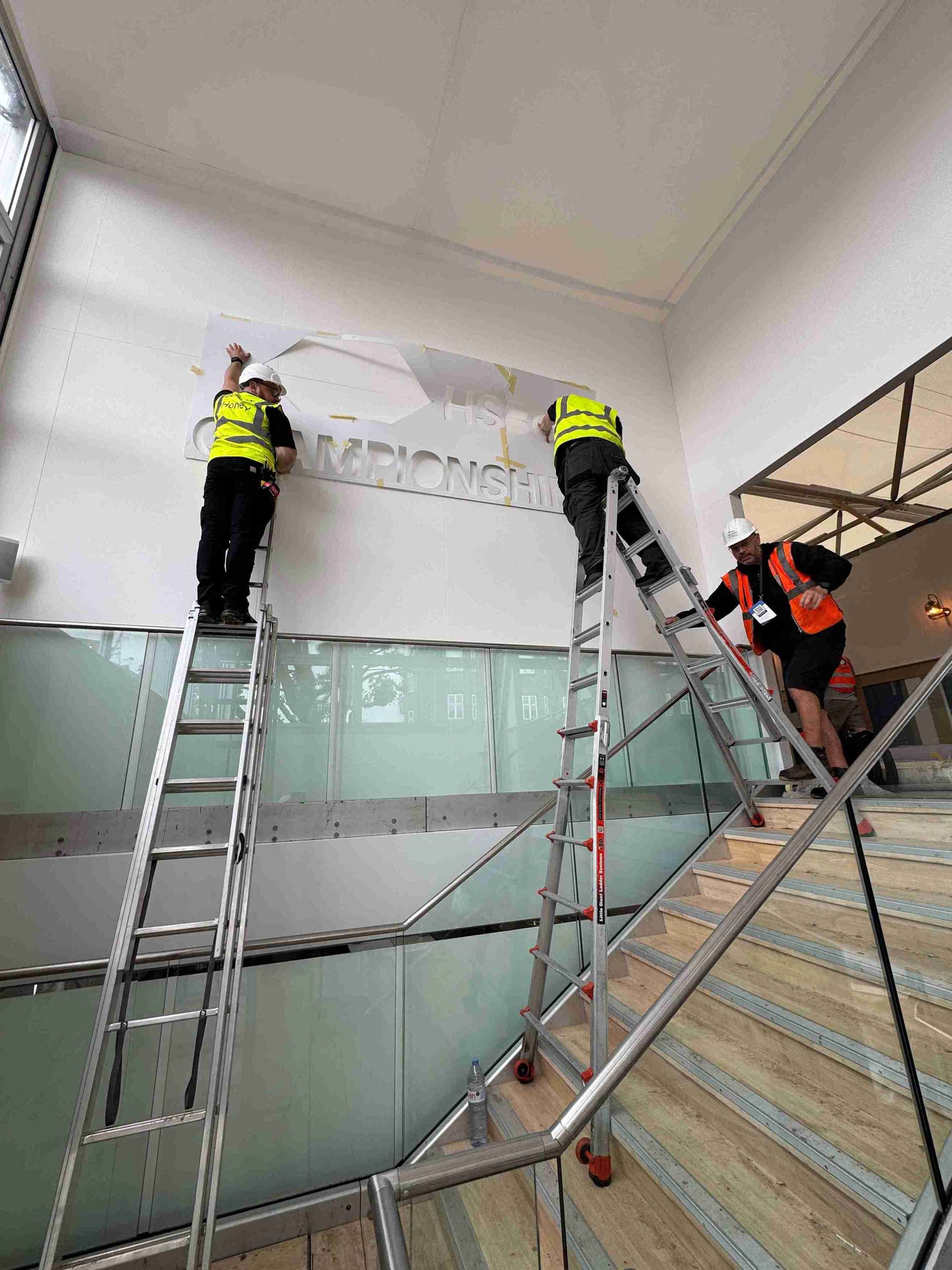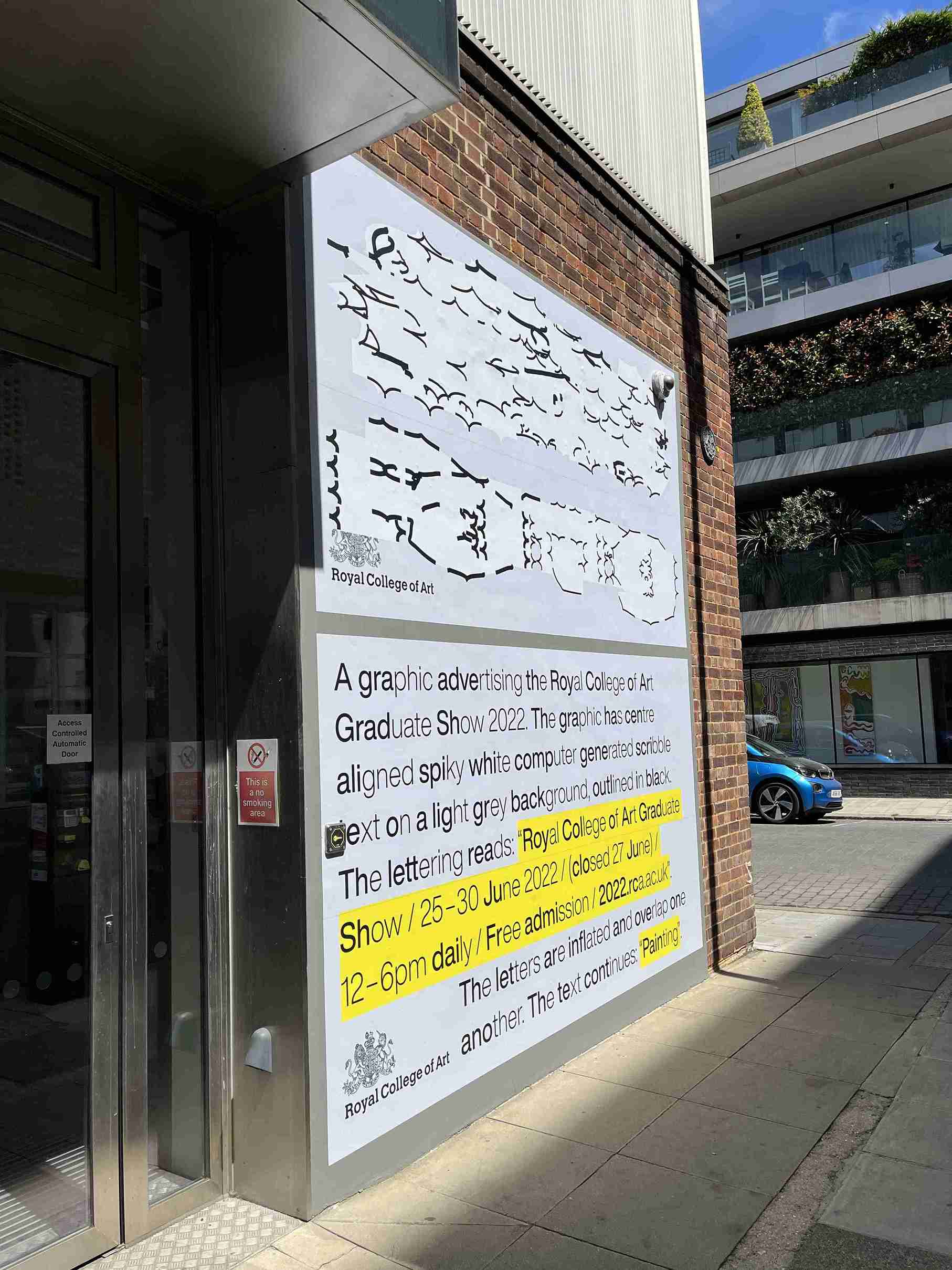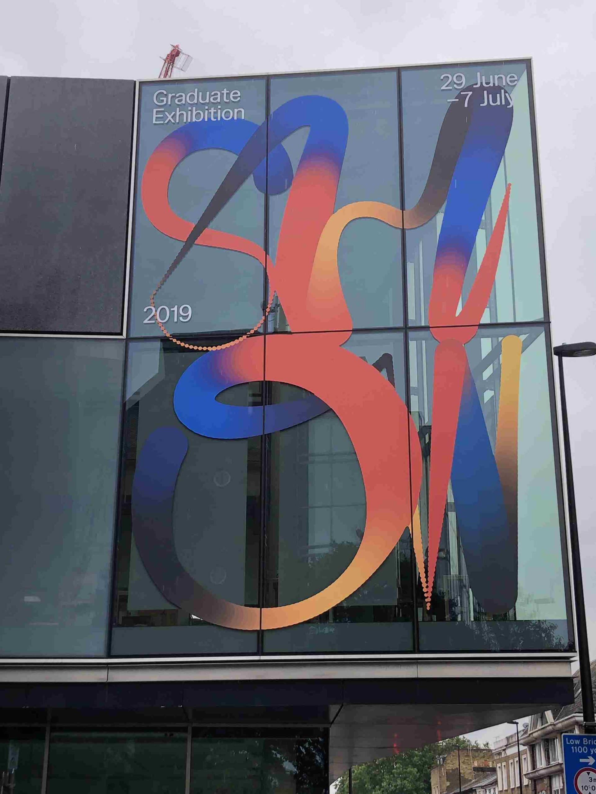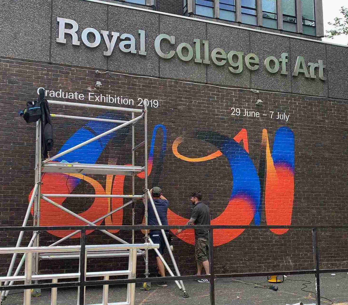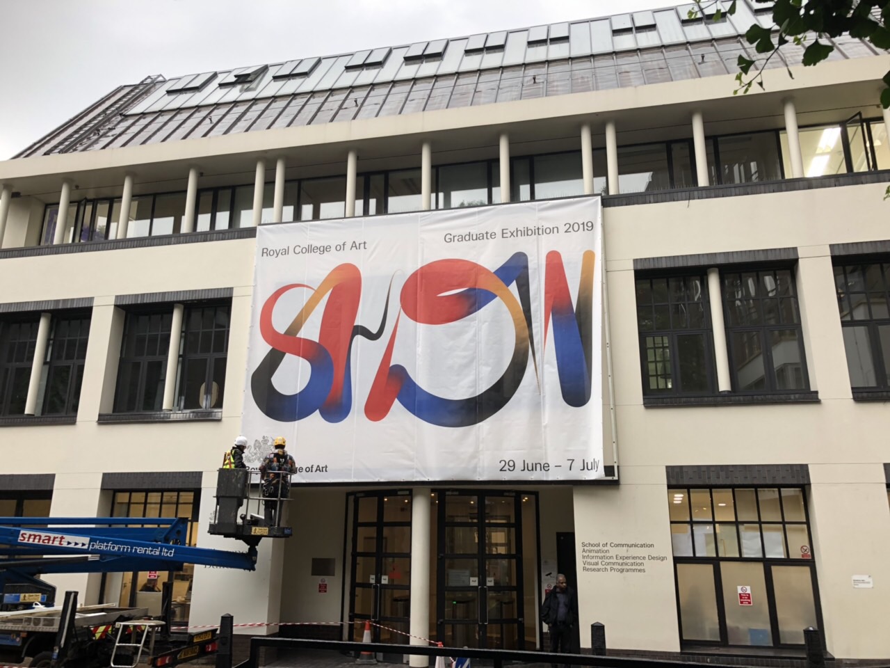 Royal College of Art selected two outstanding students to showcase their design work. The College signed contracts with both students, and their projects were displayed across different campuses for two weeks. We were responsible for the production and installation of digitally printed graphics, applied to brick walls and windows both internally and externally.