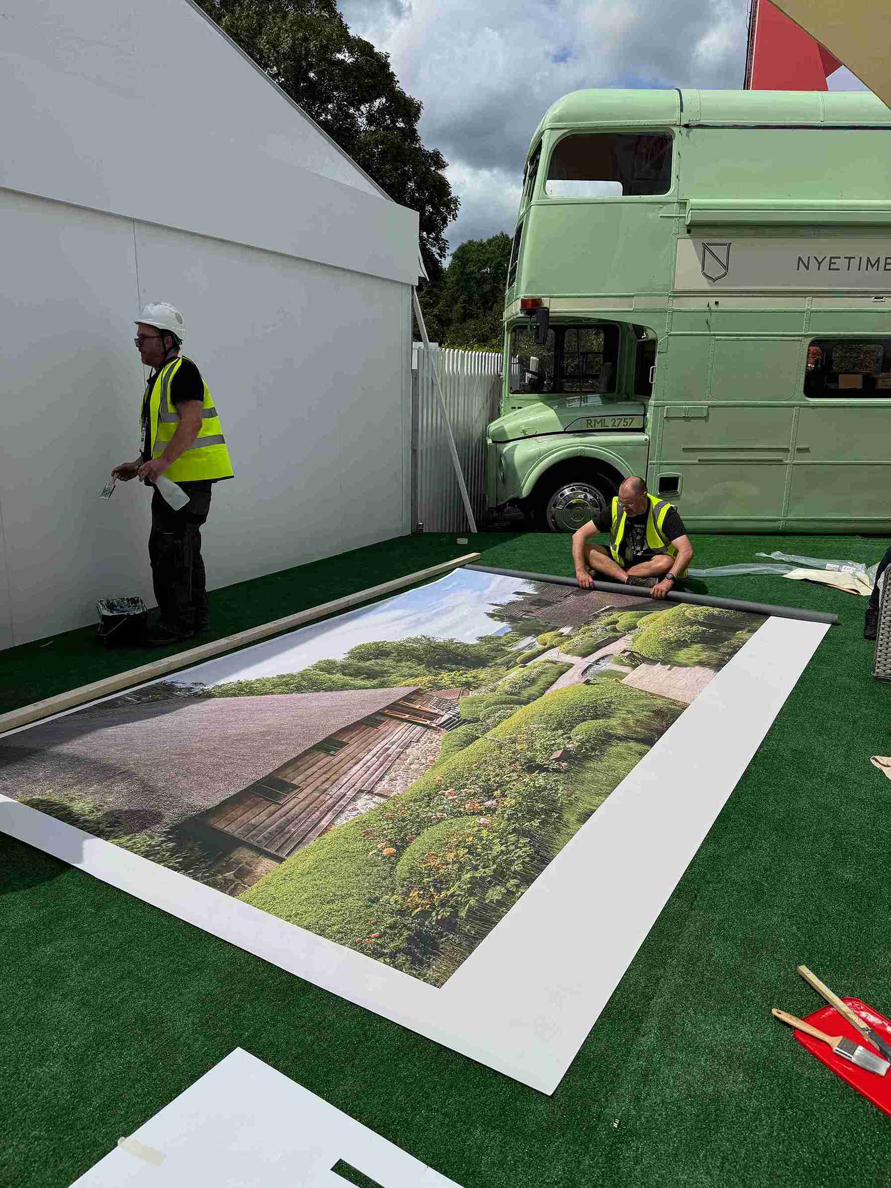 As part of this collaboration, we produced a bespoke wallpaper, which was printed as one continuous roll rather than in individual sections. This unique approach ensured a seamless and sophisticated finish. The high-quality print execution further enhanced the visual impact, perfectly complementing the prestigious atmosphere of the tournament and the refined elegance of Nyetimber.