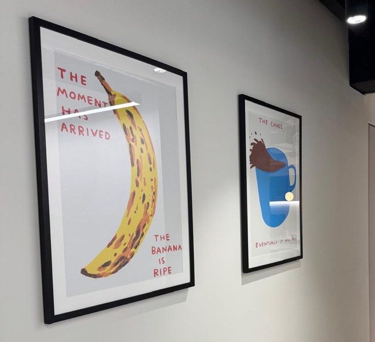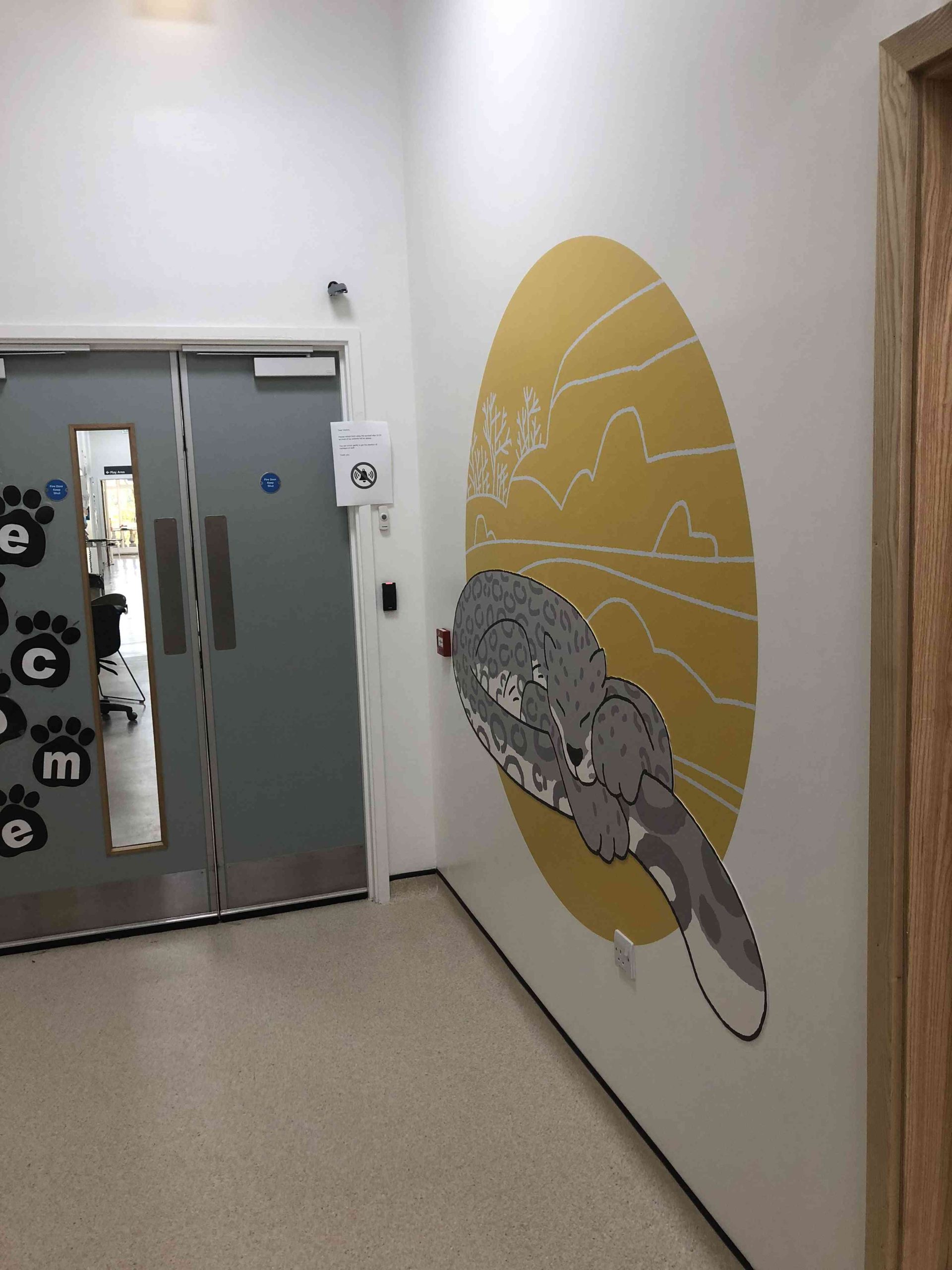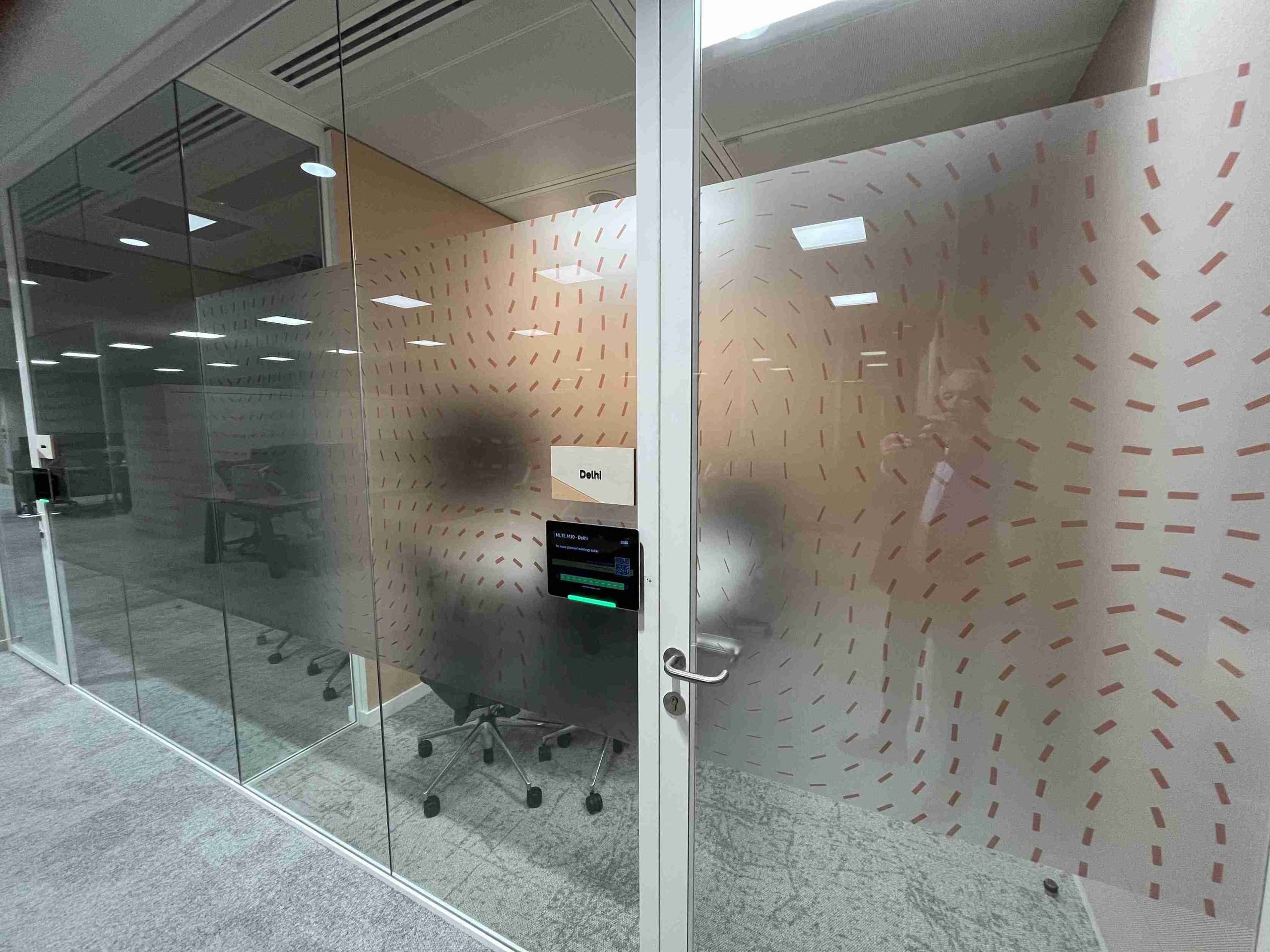 We used four colour print on an optically clear material, which we then applied to glass. The walls are printed cut vinyl. To meet the exacting specifications, we used specialist colour correction software.