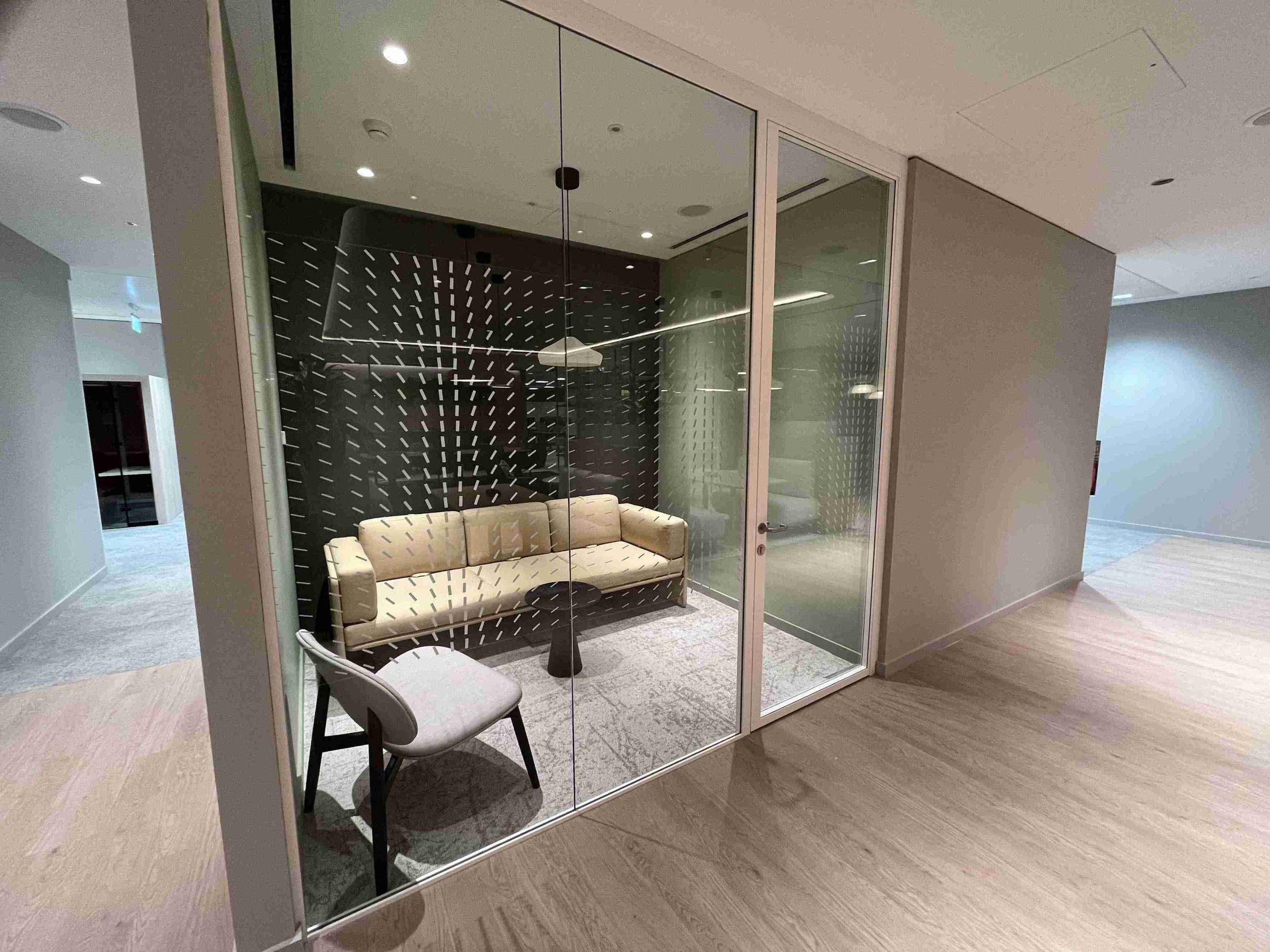 The project for MYO Piccadilly included office space interior design and directional signage. The workspace was developed with a focus on functionality, comfort, and a modern aesthetic, tailored to the needs of a flexible office environment. Branded wayfinding and signage were integrated seamlessly into the design, enhancing navigation and reinforcing identity. The result is a cohesive office space that combines practicality with a strong visual presence.