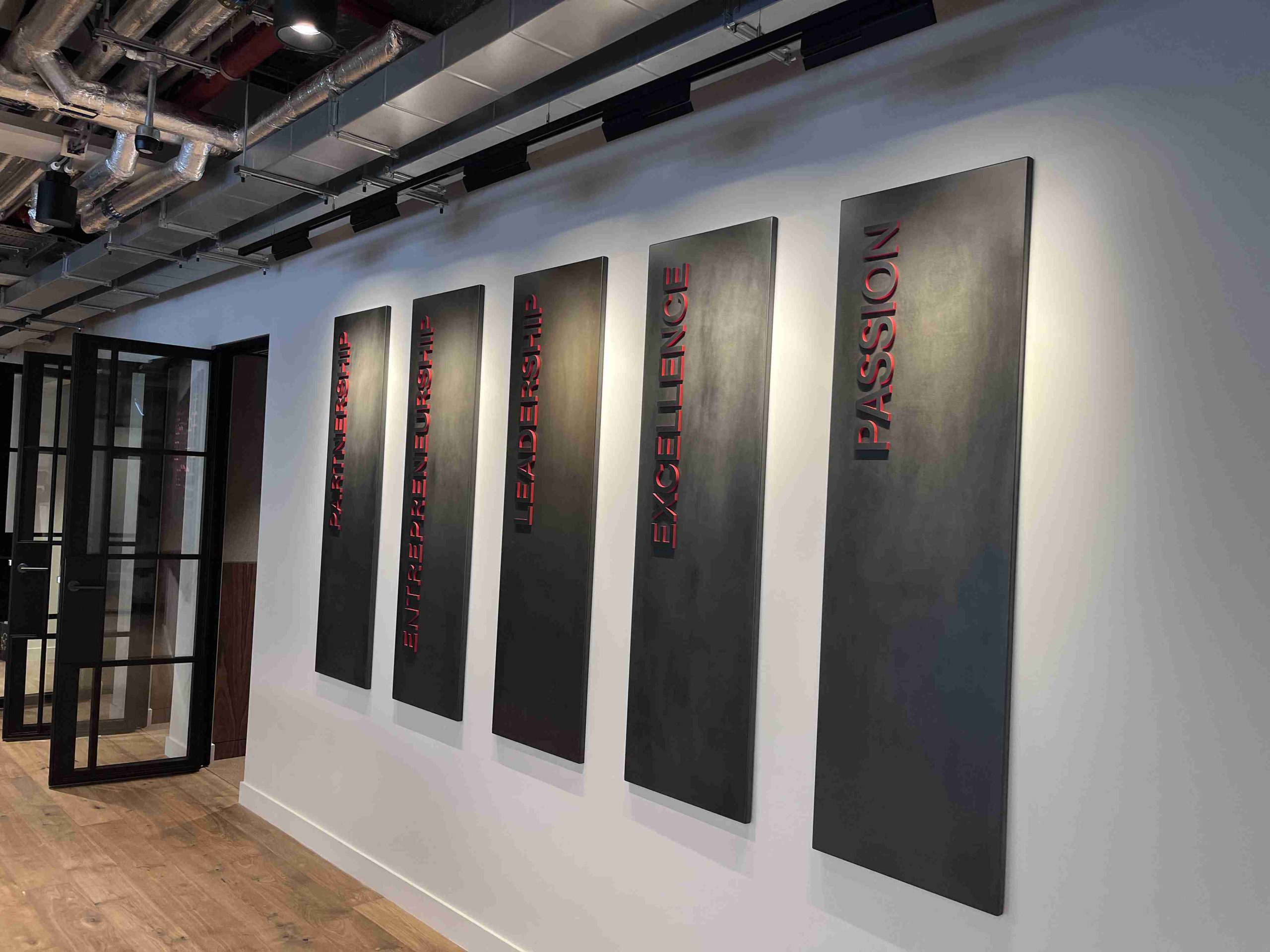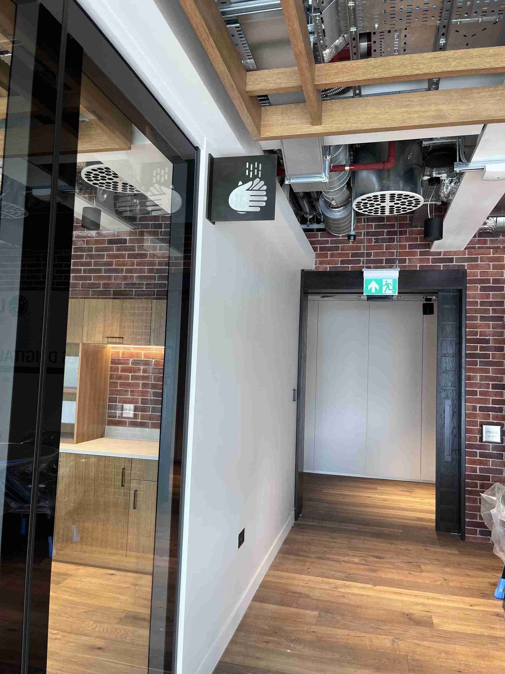 For the Virgin Whitfield Studios project, we designed, produced, and installed a wide range of custom signage and architectural features. This included fabricating and installing metal signs, acrylic panels, and decorative elements across multiple floors of the building. We used black metal and acrylic for durability and aesthetic appeal, ensuring all pieces were tailored to fit the design requirements. The project also involved the creation of custom stair level numbering, toilet and shower signage, and the installation of metal railings for various areas, all contributing to the building's overall functionality and visual identity.