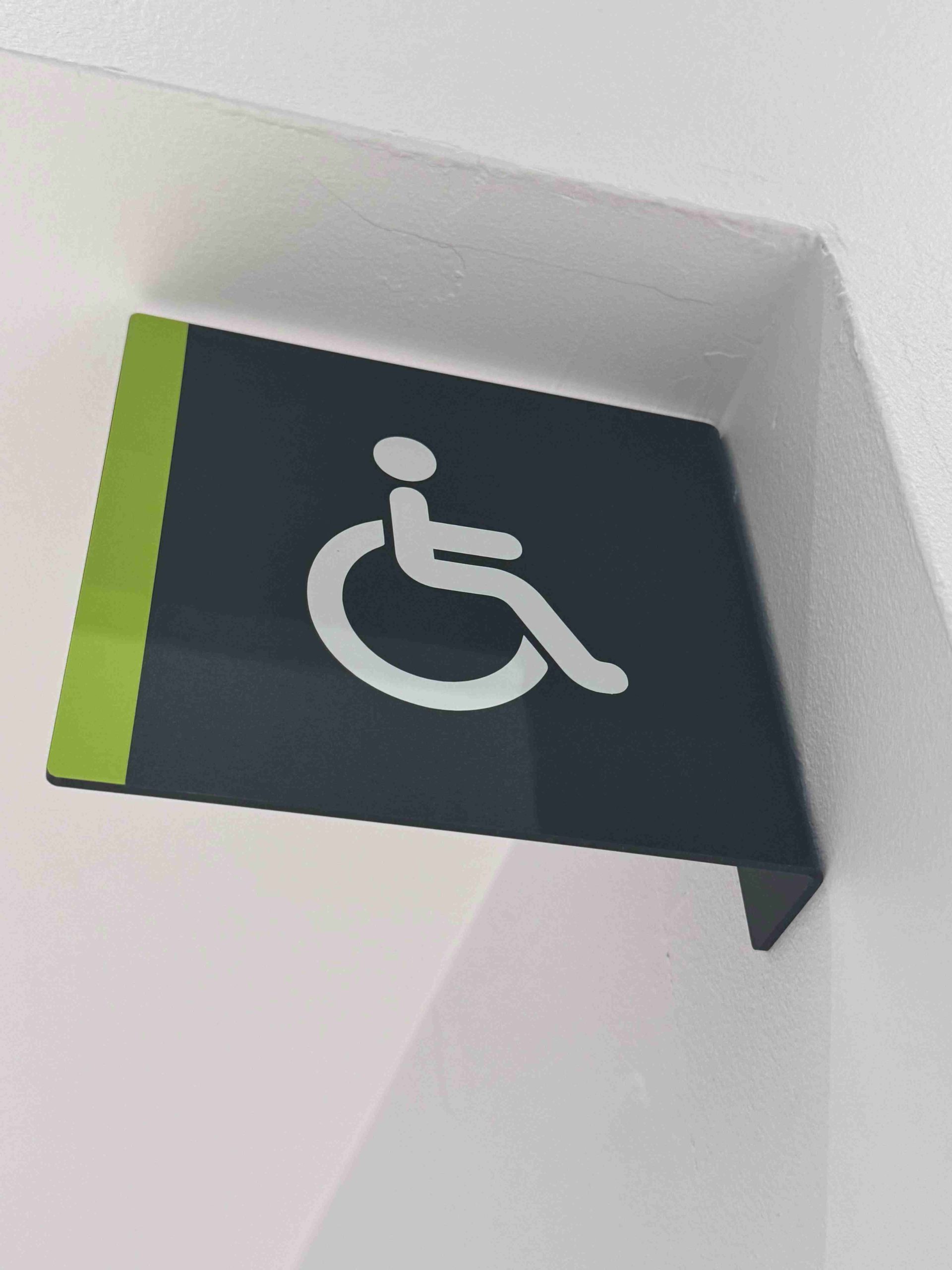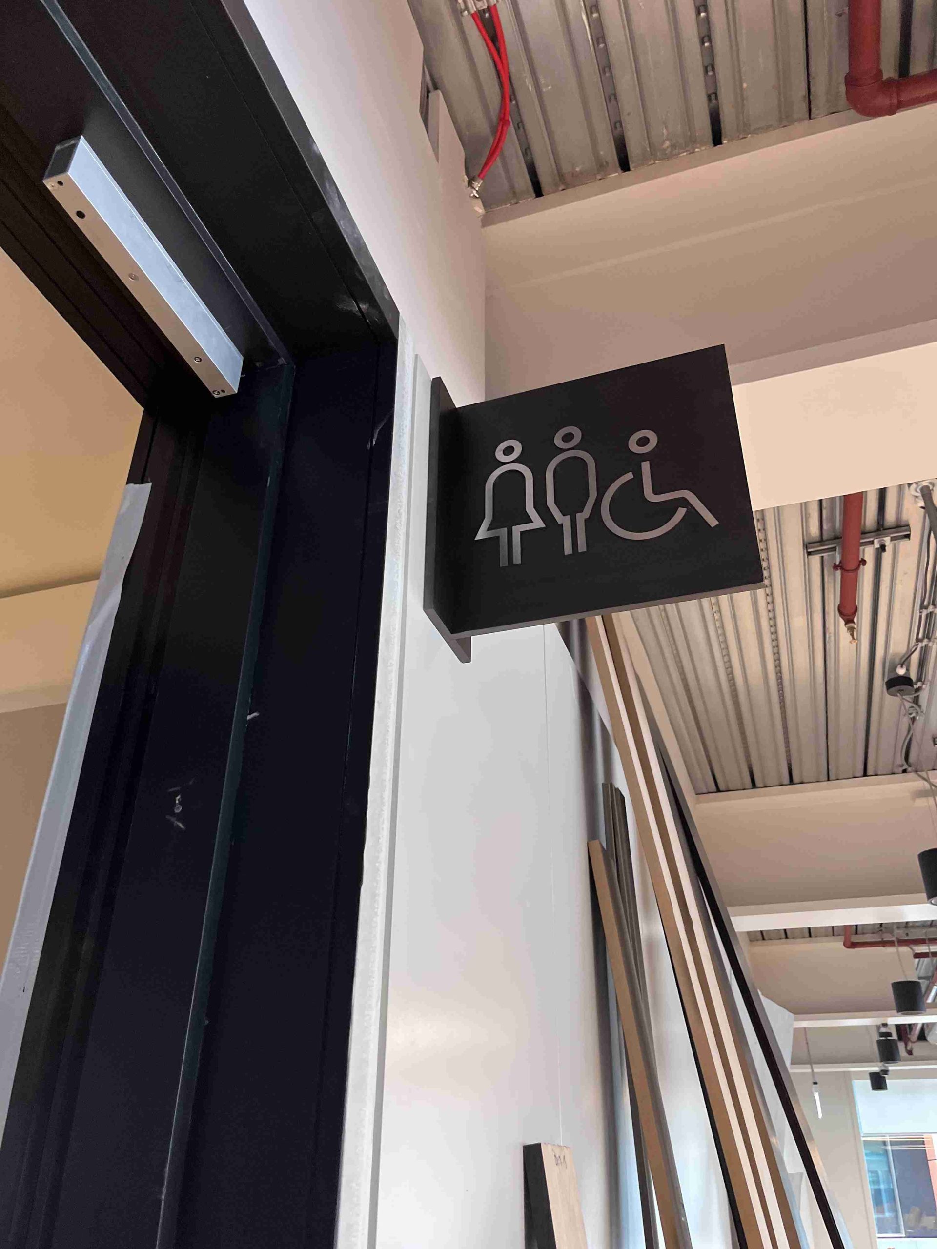 Manufactured and installed sprayed painted metal cut to shape wc and shower directional signage throughout the office space.