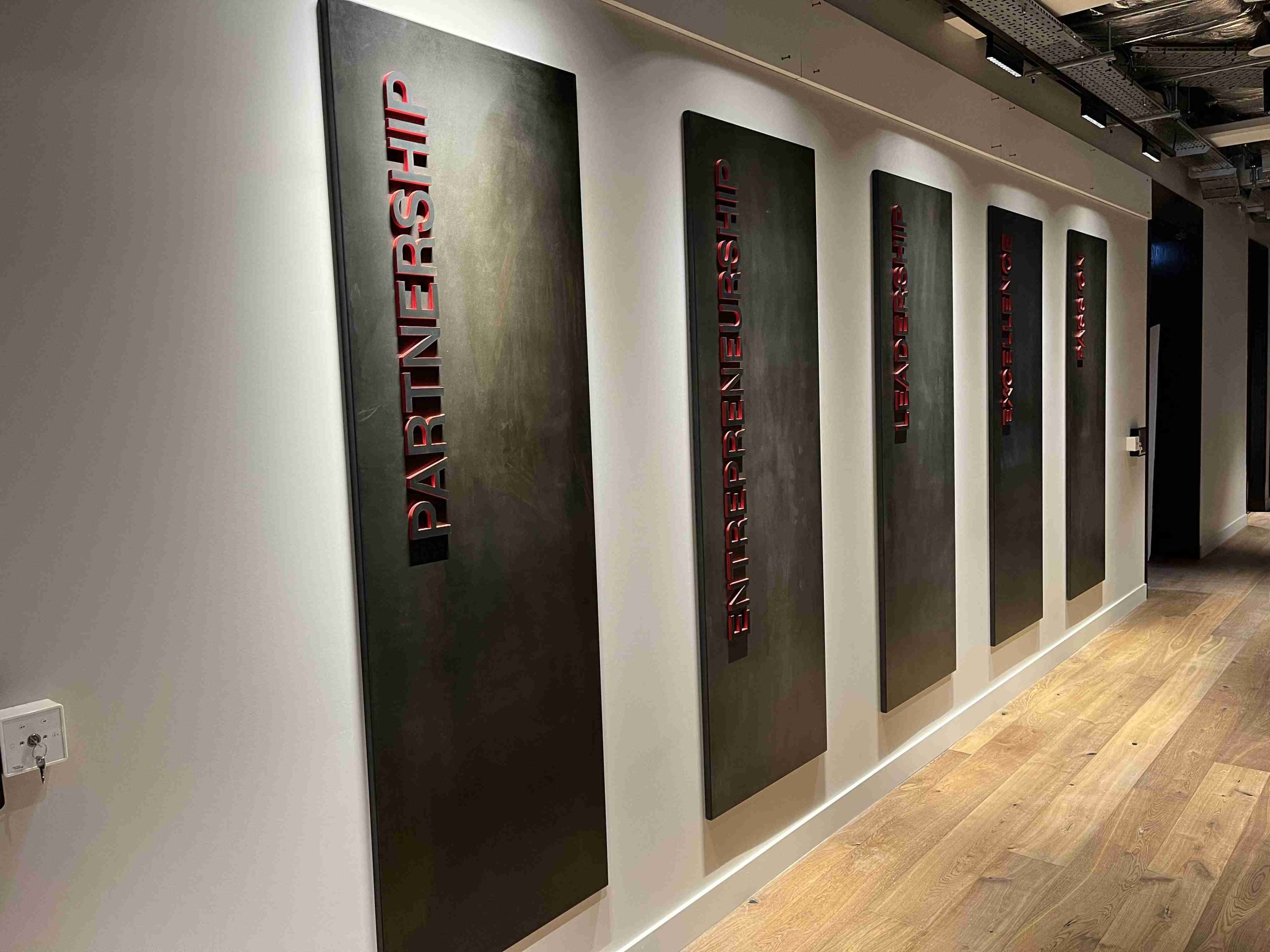 The WORLDPAY project at the O2 Arena VIP Suite involved the design, production, and installation of various elements tailored to create a premium experience for guests. The project included the creation of custom furniture, signage, and décor, as well as unique installations such as LED lighting and wall-mounted signs, all in line with the client's branding and functional requirements.